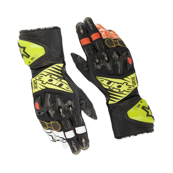 GUANTES ALPINESTARS GP TECH V2 NEGROS, AMARILLO FLUO Y ROJO FLUO
